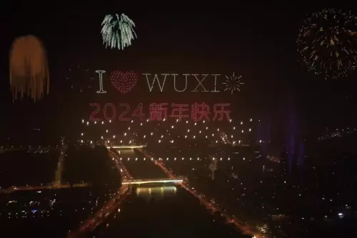 最值得一提的,是在江苏无锡运河艺术公园的这场,表演由1800架无人机组成,其中包括了300架携带冷烟花的无人机。为观众们演绎了精彩的骏马奔腾、飞龙在天,在精准的倒计时中迎来2024并送上新年祝福。