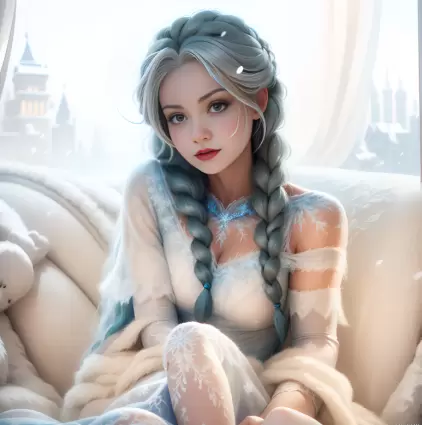 原照片中的黑色头发变幻成具有光泽感的冰蓝色长发,平平无奇的毛衣点缀上了晶莹的雪花和清透的薄纱,就连窗外的景色都变成了大雪纷飞的欧式城堡,让用户仿佛一瞬间就置身于童话中的奇幻世界。