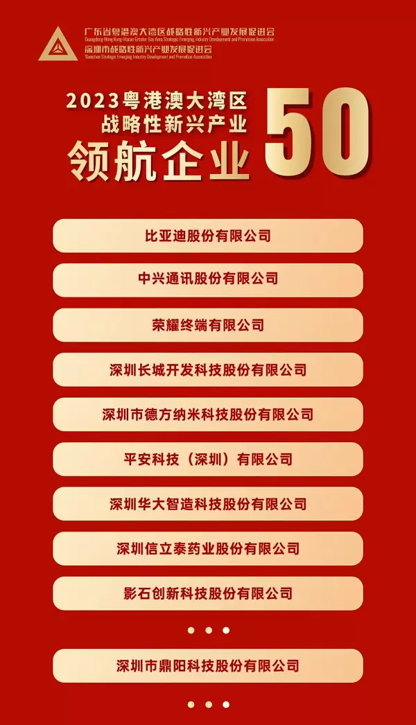 审核工作历时7个月时间,50多位专家进行评审,通过“新闻发布、征集报名、材料初审、现场调研、综合评审”等环节,从“企业基本情况及战略布局、科技创新、产业创新、模式与管理创新、社会责任”等五个维度重点评价,最终评选出50家“领航企业”,包括比亚迪、中兴通讯、荣耀、平安科技、华大智造、影石创新、鼎阳科技等。