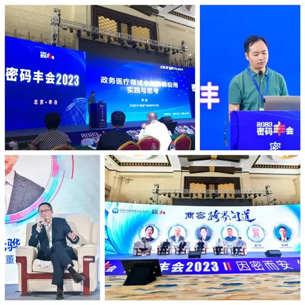 密码“丰”会2023:6月9日,以“因密而安,创新·应用”为主题的密码“丰”会2023在北京丰台成功召开。东进技术作为协办单位亮相本次大会,并通过主旨演讲、商密跨界问道、展览展示等形式深度参与大会。东进技术总裁贺建楠作为商密跨界问道的对话嘉宾,共话商用密码在不同行业中的应用和创新。东进技术产品线技术总监罗漫作了题为《政务医疗领域中的密码应用实践与思考》的分享。