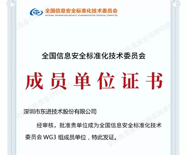 东进技术获批加入全国信息安全标准化技术委员会,成为信安标委密码技术标准工作组(WG3)成员单位,参与密码技术相关标准的制定、推广和应用等工作,同时结合自身的技术优势,为标准化工作的方针、政策和技术措施的提出献计献策。