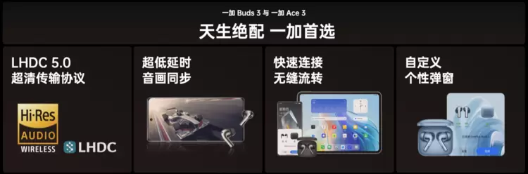 连接上,一加 Buds 3支持LHDC 5.0 超清传输协议,拥有96kHz 超高采样率、1Mbps无线传输码率。同时,延续 OPPO蓝光基因,一加 Buds 3借助 OPPO 19年声学技术积累与沉淀,为不同的用户提供最适合的音效方案,在金耳朵声学团队调教之下,其音质表现获得行业标杆 Hi-Res 高解析音质认证。