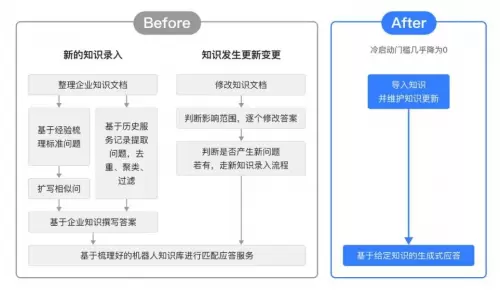 听上去就挺繁琐的,要是企业知识更新频率高,不仅要搞得运营人员手忙脚乱,还会因为知识更新不及时,影响服务的效果。