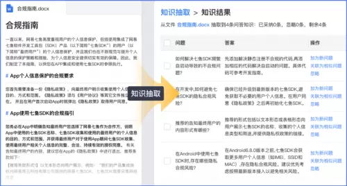使用商河大模型知识抽取能力后,文档导入后,快速提取文档内容,并将其转化为机器人的问答对内容。