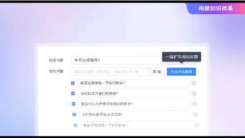 你会想:50 条,够写一天了!一个问题就要搞一天......有了七鱼全新知识库构建助手,扩写 50 条相似问在一分钟之内就可以完成!