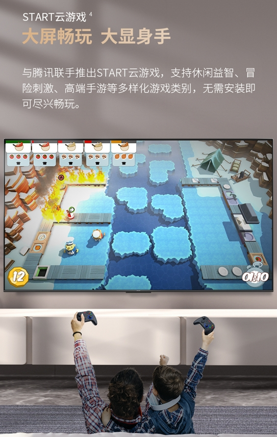 夏普Taitum3.0智能系统全新升级,设计更加人性化,拥有跨平台内容聚合搜索等多项功能,还有海量影视资源。与腾讯联手推出的START云游戏功能,可以蓝牙连接手柄进行游戏,其云端算力支持多样化的游戏类别与存量,让用户体验巨幕游戏娱乐的快感。