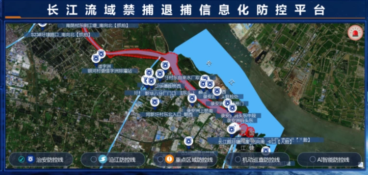 在长江常州段,117套人车结构化摄像机、全景AR摄像机、智能巡逻机器人等智能化监控设备联动,用一张“智能防控天网”建起首个长江禁捕退捕信息化防控平台;