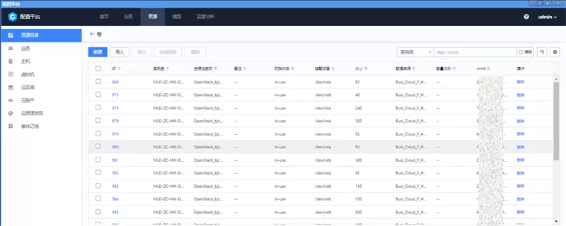 ·自动采集录入虚拟机实例近1600条,计算服务器160+条,存储服务器110+条,虚拟资源卷1200+条。