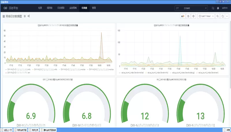 完成日志监控数据告警配置,可通过网络设备的日志数据分析来获取网络设备健康状态,同时,对网络设备的日志级别进行数量统计及监控展示面板。共接入70+个网络日志数据源,创建10个网络任务接入任务,5个网络日志数据仪表盘,3个日志关键字告警任务。