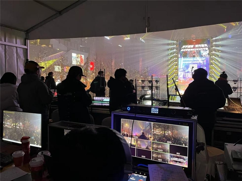 能做到这样虚实融合的直播效果,是基于世优科技的无人机虚拟跟踪航拍技术,本次创新突破了传统虚拟跟踪中,角度、高度等不同维度的限制,实时将无人机航拍画面叠加4K超高清虚拟内容,向屏幕后的观众们呈现出前所未有的拍摄视角。同时,世优科技凭借虚拟数字人技术,配合成都交子大道周围宏伟的建筑群,以及双子塔的光影交互,与现场导演及团队共同完成了,国内前沿的无人机虚拟航拍直播演出。