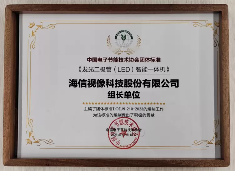 近日,中国电子节能技术协会发布T/DZJN 210-2023《发光二极管(LED)智能一体机》团体标准,海信作为组长单位主持该团体标准的编制。