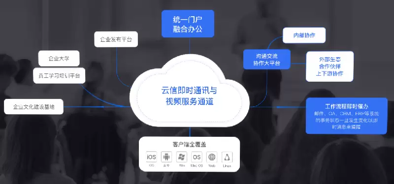 但是,在企业协同变革的尝试中,他们面临了诸多痛点:企业数据安全问题严重,不利于数据资产沉淀和利用;企业内部伙伴沟通困难、生态链合作伙伴互联互通困难;员工多、地域广,协作困难;办公系统繁多且割裂、融合度低;员工归属感和价值认同感存在问题;决策链复杂、速度慢,沟通协作成本高;企业自研通讯系统投入大、难度高、周期长、易流产;会议直播、员工内培等平台缺失等等。