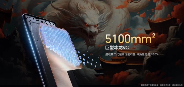 强劲性能离不开高效的散热体验。荣耀X50 GT拥有5100mm²同档位超大VC面积,搭载了全新散热架构,模拟大自然水循环系统,对蒸发、运输和凝结三个重要环节进行重构,实现散热效率质的飞跃。通过采用微槽道地脉、伯努利仿生翼片两项行业首创技术,结合散热能力提升50%的第二代超高性能石墨,在第二代AI智能壳温/环温双模型的赋能下,荣耀X50 GT实现整机散热能力大幅提升,以“冷静”表现助力用户畅玩。