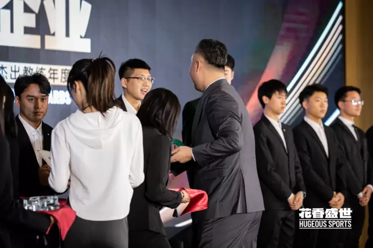 (花香盛世体育创始人CEO陈鹏吉为获奖者颁奖)