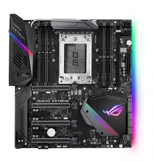ROG ZENITH EXTREME是华硕旗舰级X399主板,集华硕目前最顶尖的硬件技术于一身,包括进阶版的AURA SYNC神光同步技术、创新十足的LiveDash OLED系统仪表盘、ROG DIMM.2扩展插槽、极致的水冷散热方案等等,并附赠ROG AREION 10G万兆网卡,是X399平台极致发烧友们的不二之选。其中,位于I/O防护罩上面的LiveDash OLED系统仪表盘可自定义显示许多信息,包括CPU温度、频率、风扇转速甚至报错信息等主板实时信息,并可显示自定义个人信息,既实用又好玩。