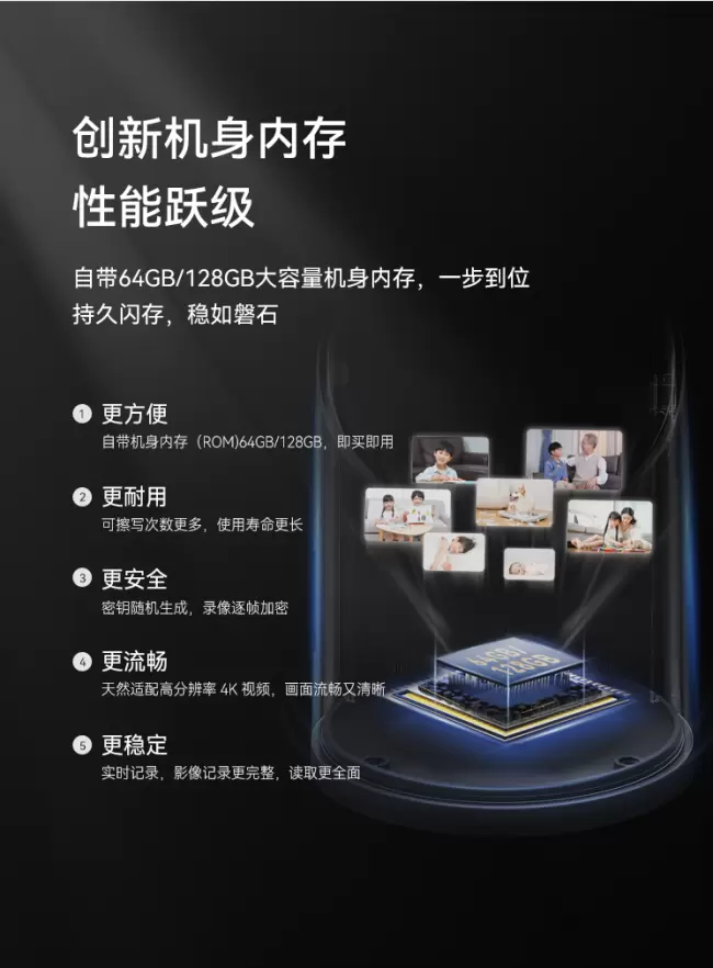 也正因如此,自带大容量机身内存的海雀全场景摄像头,可以做到性能跃级,久用也流畅。除了可以有效减少卡顿、漏帧和数据丢失外,在安全、稳定、耐用、流畅度上都全方位大幅领先于其他插SD卡的摄像头。