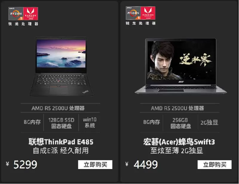 2018年,AMD锐龙笔记本电脑成功翻身,性能强劲,在计算性能追平Intel,游戏性能秒杀入门级独显的情况下,仍然保持了超高的性价比,对于学生党或是刚刚步入职场的毕业生来说,并没有太大的购买压力,款式众多,总有一款适合你,在PC硬件这波涨价大潮到来之前,一定不要错过暑促这个千载难逢的机会呀!