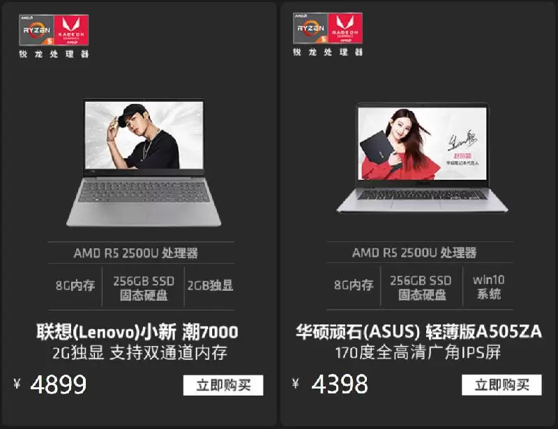 联想小新潮7000已经是非常成熟的轻薄本产品系列,搭载双通道内存和锐龙5 2500U移动处理器的小新潮7000性价比再度攀升,10小时长效续航让人不能拒绝。华硕顽石A505ZA是一款15.6英寸的轻薄笔记本,配置上采用锐龙5 2500U移动处理器,搭载Radeon Vega 8 Graphics,同时拥有8GB内存,256GB SSD,FHD IPS窄边框显示屏,有香槟金和星空灰两种颜色可选,同时配备华硕Sonic Master美声大师,影音娱乐表现出众。
