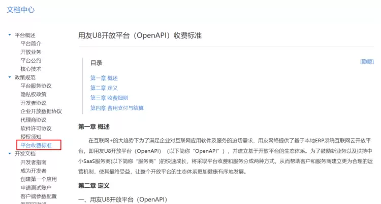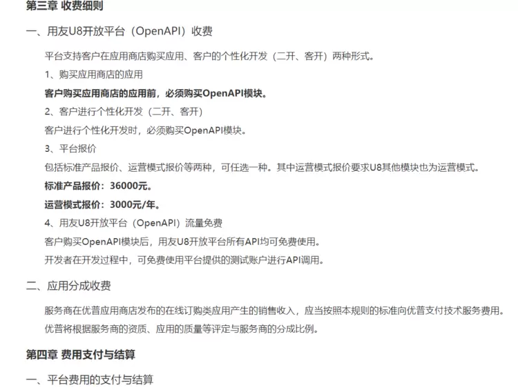 需要说明的是用友的OpenApi接口是收费的下图所示: