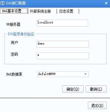 如图所示,进行EAI基本设置,我这里U8服务期就是本机,因此是localhost