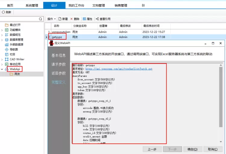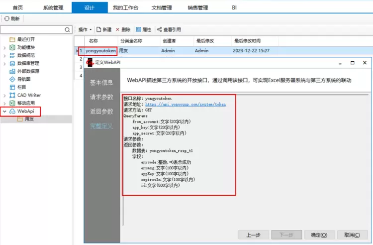 二、在Excel服务器中配置WebApi,与用友进行对接