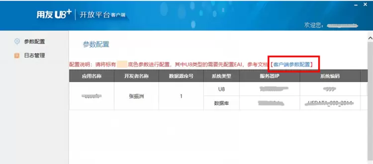 如图所示,点击客户端参数配置(红框所示),可以看到配置的示例,参照示例进行配置。