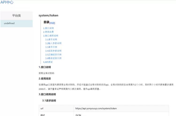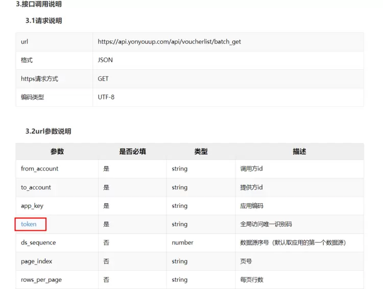 我们看到红框所示的这个token 是一个链接,是我们访问用友系统必须需要的一个参数,点击这个链接可以看到token的提取文档。