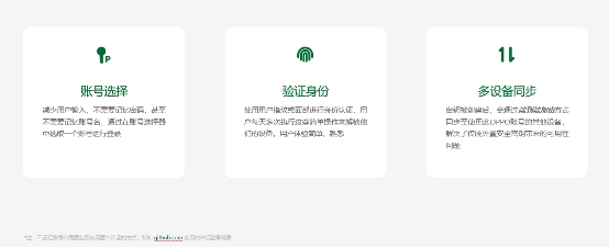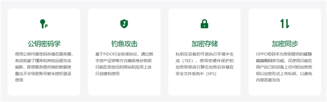 用户使用体验上,OPPO身份密钥拥有三大显著优点。首先,使用密钥可以减少用户输入,用户不需要记忆密码,甚至都不需要记忆账号。其次,使用指纹或面部进行身份认证,快速便捷,增加登录成功率。最后,密钥通过OPPO密码本进行多端同步,快速简单易用。当然,这些优点都是建立在安全可信赖的技术保障上,用户可放心使用。