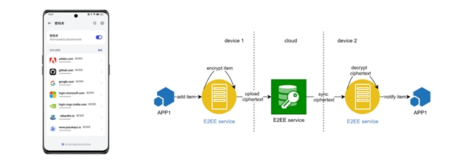 ● OPPO密码本提供了多设备密钥的管理功能,同时提供基于端到端加密的云同步功能;