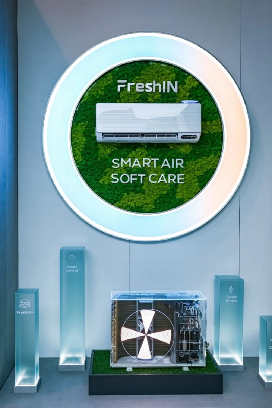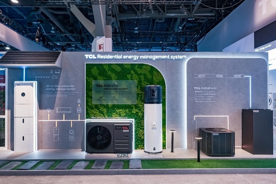 随着大众健康需求的不断升级,TCL空调面向海外市场推出搭载行业首创可呼吸双向换新风技术的FreshIN 2.0新风空调产品,其吸排组合方式大大提升新风换气效率,60m³/h大新风量和30m³/h排风量真正实现了“空调会呼吸,空气更清新”。此外,通过创新性将空调与Matter智能IoT互联技术结合,TCL Matter窗机在北美亮相。该产品能接入更多IoT互联生态系统(Google、Alexa、Home kits等其它第三方App),让生活更加便捷、舒适、智能。同时,TCL实业还为北美用户带来了户式机产品,该款产品采用环保冷媒R454B,SEER2值高达20,不仅节能高效,并且环保可持续。现场还展示了新型创新绿色取暖方式R290三联供热泵,该产品具有低能耗、高能效、减少用户能源消费等特点。
