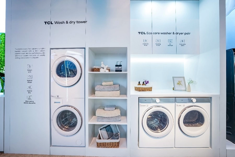 TCL双子舱洗烘护集成机,实现一站式洗烘护,搭载全新热泵智能变温技术,既可50℃高温除菌,也可42℃低温柔烘,高效节能的同时避免了衣物损伤。