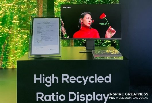 获TÜV莱茵“含回收材料产品”认证的TCL华星23.8英寸显示模组,于本届CES首次出现在全球消费者眼前,同样收获众多关注。该产品回收材料含量达51.5%,功耗比TCL华星首款能源之星ES8.0显示器低30%以上,展现了TCL华星的环保承诺和技术实力。