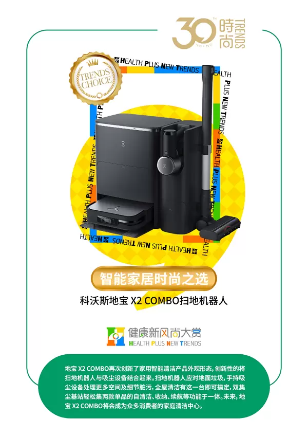 在国内市场,地宝X2 COMBO一经推出也收获媒体、消费者多方关注,时尚集团30周年健康新风尚大赏活动中,地宝X2 COMBO荣获“智能家居时尚之选”奖项。时尚集团认为,科沃斯地宝X2 COMBO再次创新了家居智能清洁产品的外观形态,开启智能家居清洁新纪元,未来地宝X2 COMBO将成为众多消费者的家庭清洁中心。