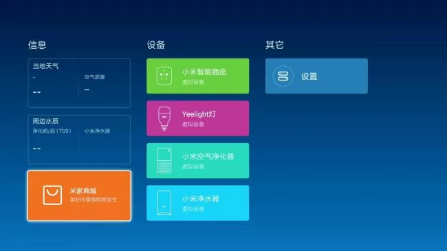 按遥控器上键,点击“米家”,就会看到刚绑定的米家互联网空调就出现了。(图片示意,仅供参考)