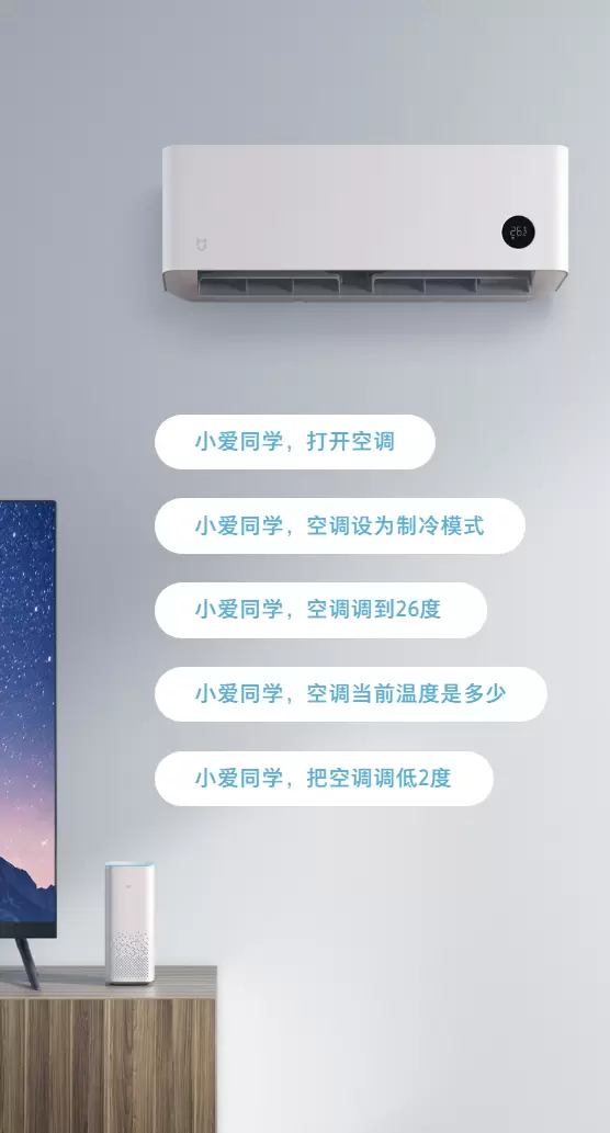 第五步: 现在,按住遥控器语音键,就可以向米家互联网空调发号施令!“打开米家互联网空调”,“空调调到制冷模式”,“空调温度调到26°C”等等指令,开启凉爽享受模式!