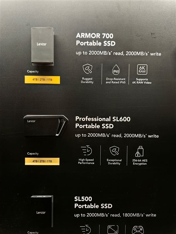 在高端影像存储方面不断提升突破之外,Lexar雷克沙的硬盘阵营也在逐渐向更高容量、更快速度、更安全便携发展,这次CES2024展会也给我们带来了不少这方面的新品代表。此次Lexar雷克沙展出的高速移动固态硬盘SL500和ARMOR 700系列产品,是与Silicon Motion慧荣科技建立深度合作关系后推出的最新成果,产品性能延续了Lexar雷克沙全品类产品的优秀基因——高性能、高品质、大容量,直接碾压市面上大多数移动硬盘产品。