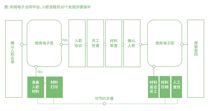 其次是提效效应,通过电子签约的数字化能力,系统性缩短人力资源管理路径。以新浪为例,通过使用法大大电子签,将入职流程的10个处理步骤减半,帮助企业在人力资源场景下节省约2.43万份纸质合同,约10.7万张办公用纸,年度累计减碳约4.27万吨。