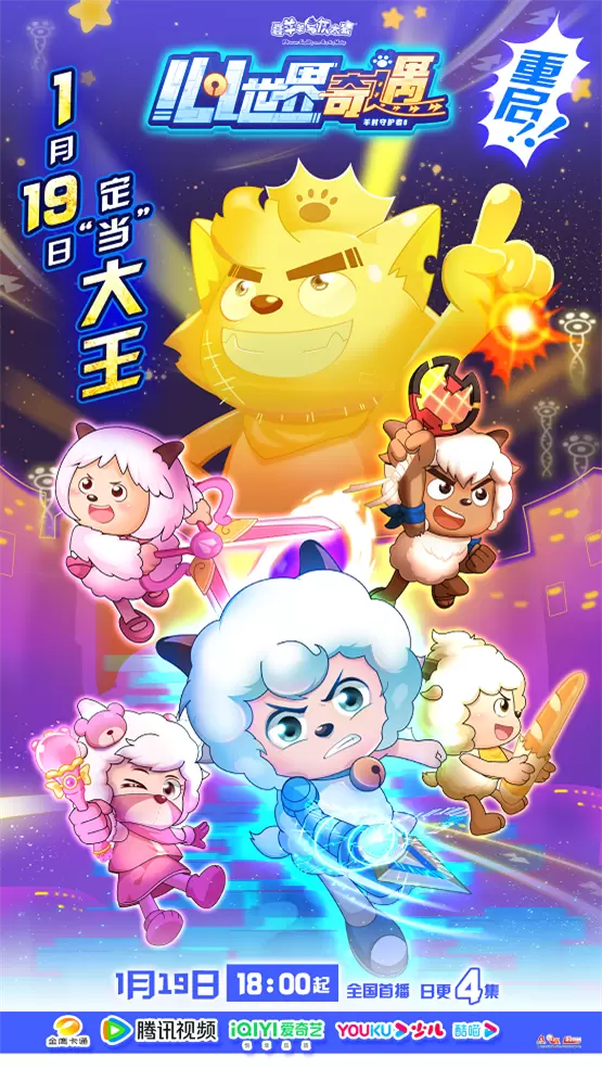 时隔半载,羊村守护者们迎来新冒险!《羊村守护者8之心世界奇遇》正式官宣定档!该片将于2024年1月19日18:00起在金鹰卡通电视频道火热开播,并且在爱奇艺、腾讯视频、优酷少儿、酷喵TV网络视频平台同步上线。这一季《喜羊羊与灰太狼》系列动画勇敢创新,讲述了小羊们进入灰太狼的大脑世界,在脑内各个区域完成任务,帮助灰太狼修复大脑的故事。快来和小羊们踏上全新的守护之旅吧!