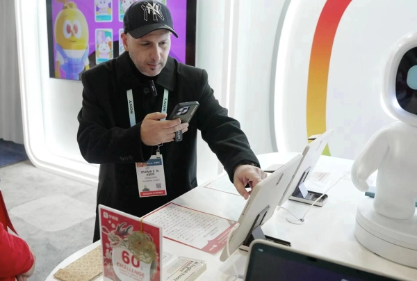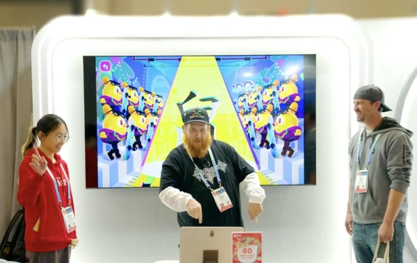 跟着音乐节奏写汉字 学习机互动功能现场“圈粉”在学而思展台,嘉宾可以深度体验学而思旗舰学习机的各项功能。最受欢迎的学习交互来自“摩比爱写字”,伴随着音乐节奏,以隔空手势的交互方式教学汉字,只需十几秒,零基础的外国友人便能亲手写出自己的生肖汉字,更有参与体验的外国友人随着音乐舞动,边跳边写字。