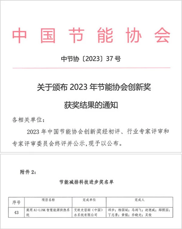 A.O.史密斯“AI-LiNK智慧能源供热系统“创新领航,荣获“节能减排科技进步奖“