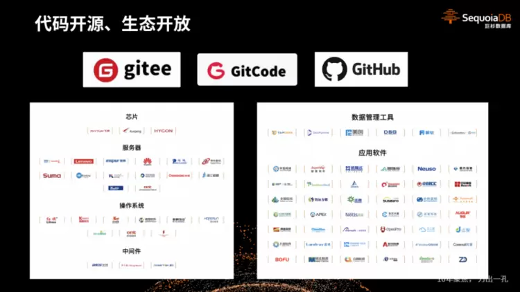 新年伊始,巨杉数据库也将谱写崭新篇章。发布会介绍,巨杉数据库决定将在2024年Q1再次发布开源版本,不仅希望获得社区同仁的参与和监督,让产品未来发展更透明;同时也承担历史责任,希望通过开源的方式吸引更多合作伙伴,共同发展中国的分布式文档型数据库生态链,促进业务的快速迭代和开发效率的提升。近期,SequoiaDB新版本的源代码将通过Gitee、GitCode及GitHub再次开源。