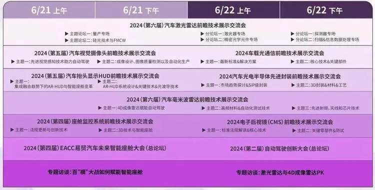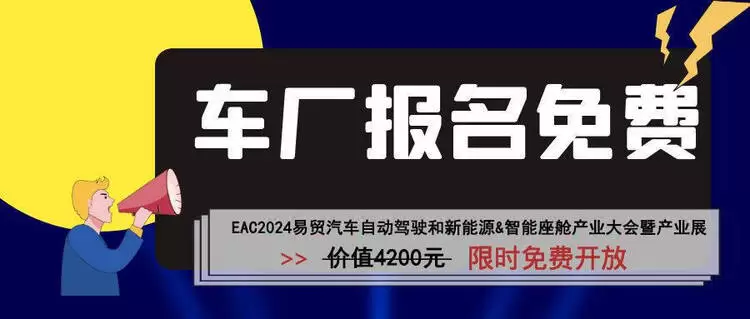 限时免费送:凡是报名参加2024EAC易贸汽车大会的主机厂/电池厂参会代表,即可免费获得赠送全馆通票(价值4200元)1张!可同时报名参加2024EAC易贸汽车产业大会同期举办的任意一场主题活动(包括第二届线控底盘大会、第六届激光雷达、第六届毫米波雷达、第五届视觉摄像头、第四届座舱监控DMS、第五届抬头显示HUD、第十届NVH声学、第九届汽车安全、第十一届新能源汽车热管理、第五届动力电池、智能大灯、内饰座舱大会),限时免费报名开放中!名额有限,赶紧跟小编一起注册吧!