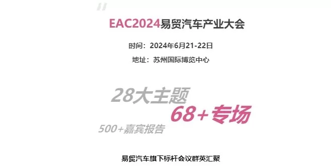 EAC2024自动驾驶&智能座舱&新能源汽车大会暨易贸汽车产业展6月21日苏州召开!