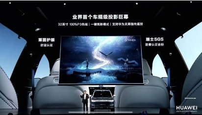 2023年12月26日,全景智慧旗舰SUV问界M9正式亮相,该车搭载业界首个车规级32英寸投影巨幕,由光峰科技提供核心器件,激光显示拥有100% P3色域,巨幕可任意悬停,伸缩收纳,莱茵护眼舒适认证和瑞士SGS防晕认证,确保长时间观影不伤眼、不晕车,在车辆行驶过程中也能稳定观看。