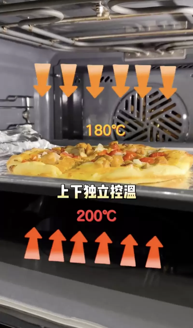 第三,独立控温。能够实现这个功能的一体机都很棒,它能做出更多元的美食,比如上层温度为180℃下层温度为200℃,两者相差20℃,就能做出上层松软下层酥脆的披萨。