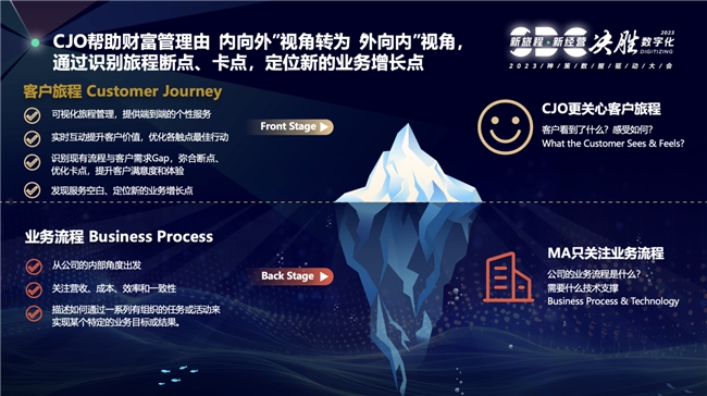这里包含两个关键要素,即客户分群与旅程管理。客户旅程中的断点、卡点、摩擦点,会直接影响业务增长,传统 MA 围绕单一渠道和触点做优化的思路下,无法在全公司内形成步调一致的业务协同,问题无法很好的解决。而 NPS 满意度调查以问卷、访谈甚至投诉处理等形式将大量资源用于客诉处理,这种局限、高成本且滞后的方式同样无法妥善解决。