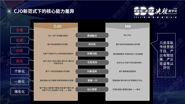 CJO与传统MA的核心能力差异,除了以上四个层面,还体现在个体化、一体化及增收化。将营销与服务割裂问题解决,本质其实是营销服务化。