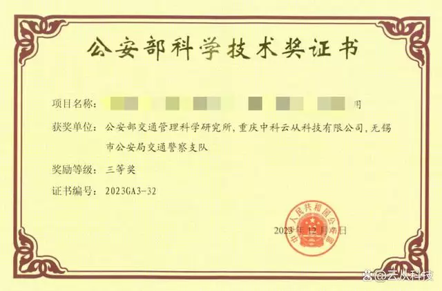近日,公安部公布了一批2023年科技信息化获奖成果。云从科技携手公安部交科所、无锡交警支队共同申报的创新性科研项目,在历经严格的形式审查、专家评审和公示环节后,最终荣膺公安部科学技术奖三等奖。这也是公安领域最高级别的技术奖项。