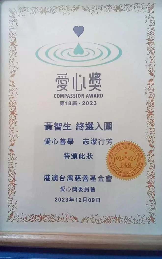 黄智生教授的感人事迹,等到了大会的高度赞扬。爱心奖终选委员会表示,获奖人感人至深的故事,在社会上形成了一个百花齐放的“爱心大花园”,激励人们为建设更加美好的社会而努力。