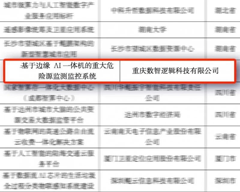 亚信科技旗下数智逻辑“基于边缘AI一体机的重大危险源监测监控系统”成功入选!